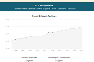 Realty Income REIT (O) Dividend Growth Over Past 28 Years (Chart)